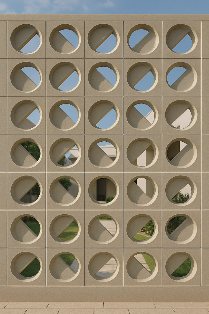O Cobogó Círculo tem em sua composição uma mistura singular de formas. As peças podem ser posicionadas todas na mesma orientação ou em direções diversas, criando paredes singulares em cada obra.