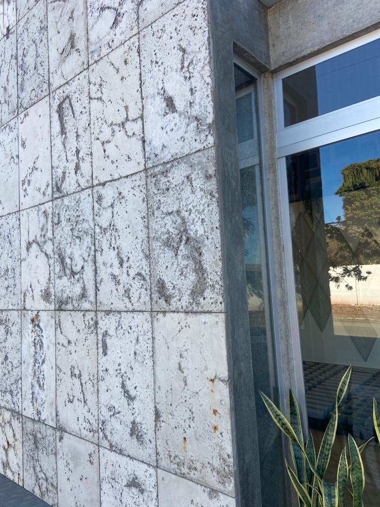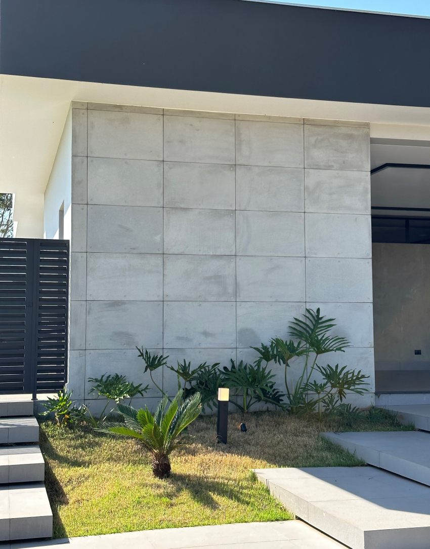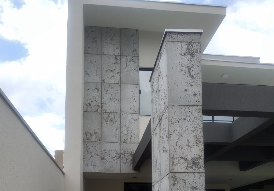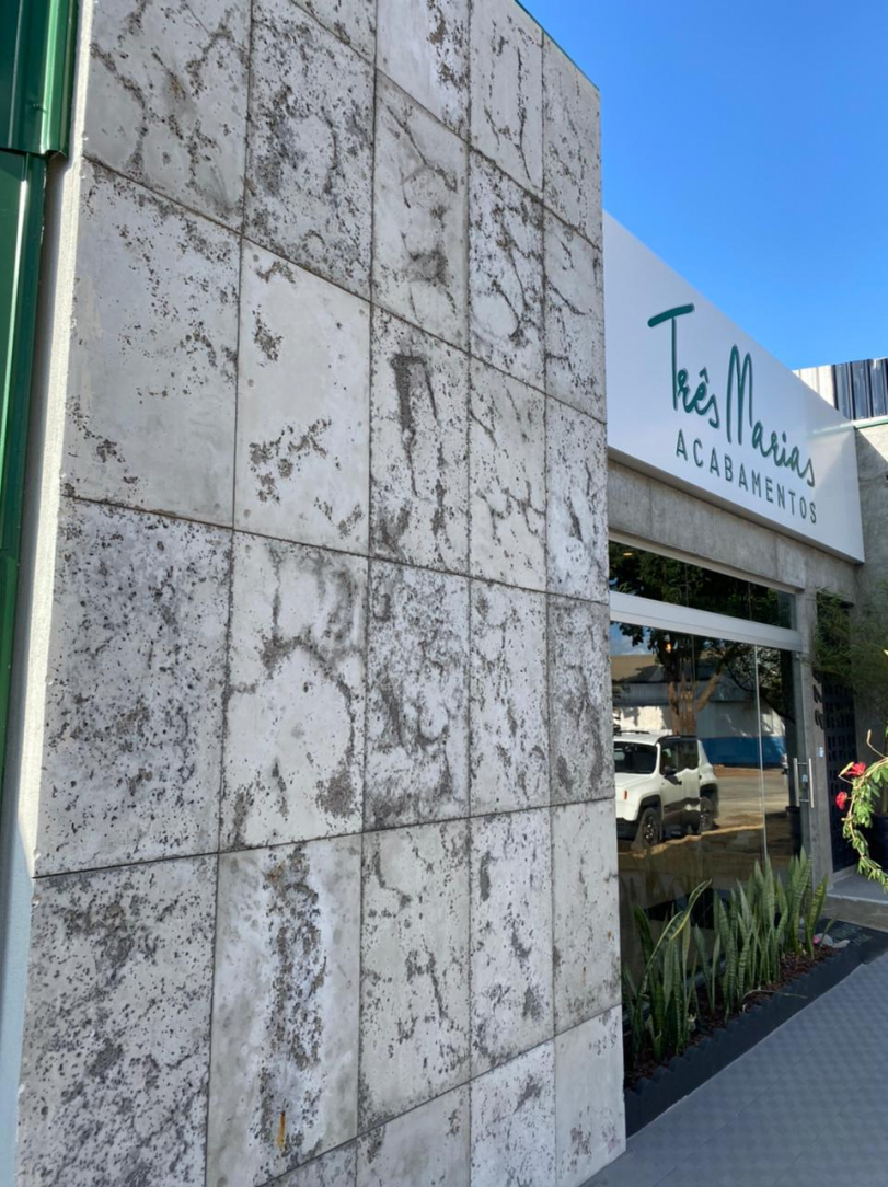 O Revestimento Truzzo traz em sua sóbria composição as características do concreto aparente em grandes dimensões. De utilização monumental, pode ser instalado em áreas internas ou externas.