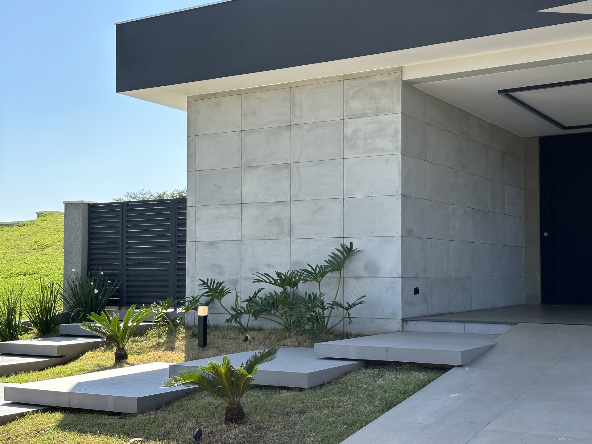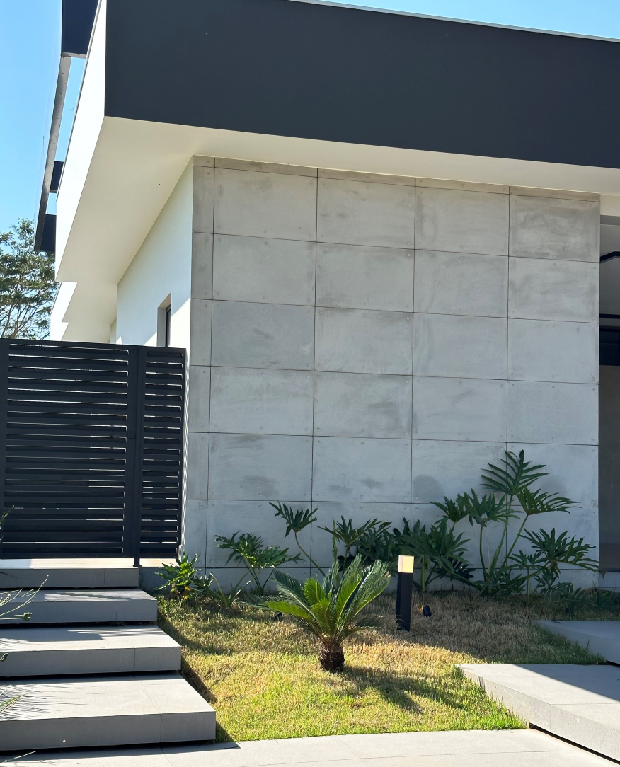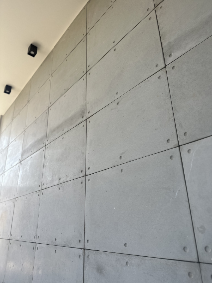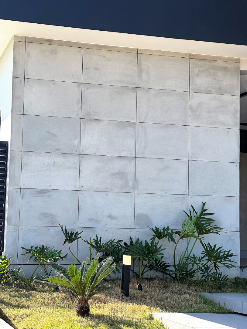 O Revestimento Truzzo traz em sua sóbria composição as características do concreto aparente em grandes dimensões. De utilização monumental, pode ser instalado em áreas internas ou externas.