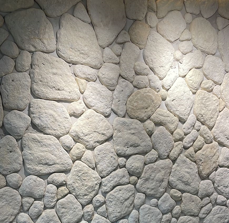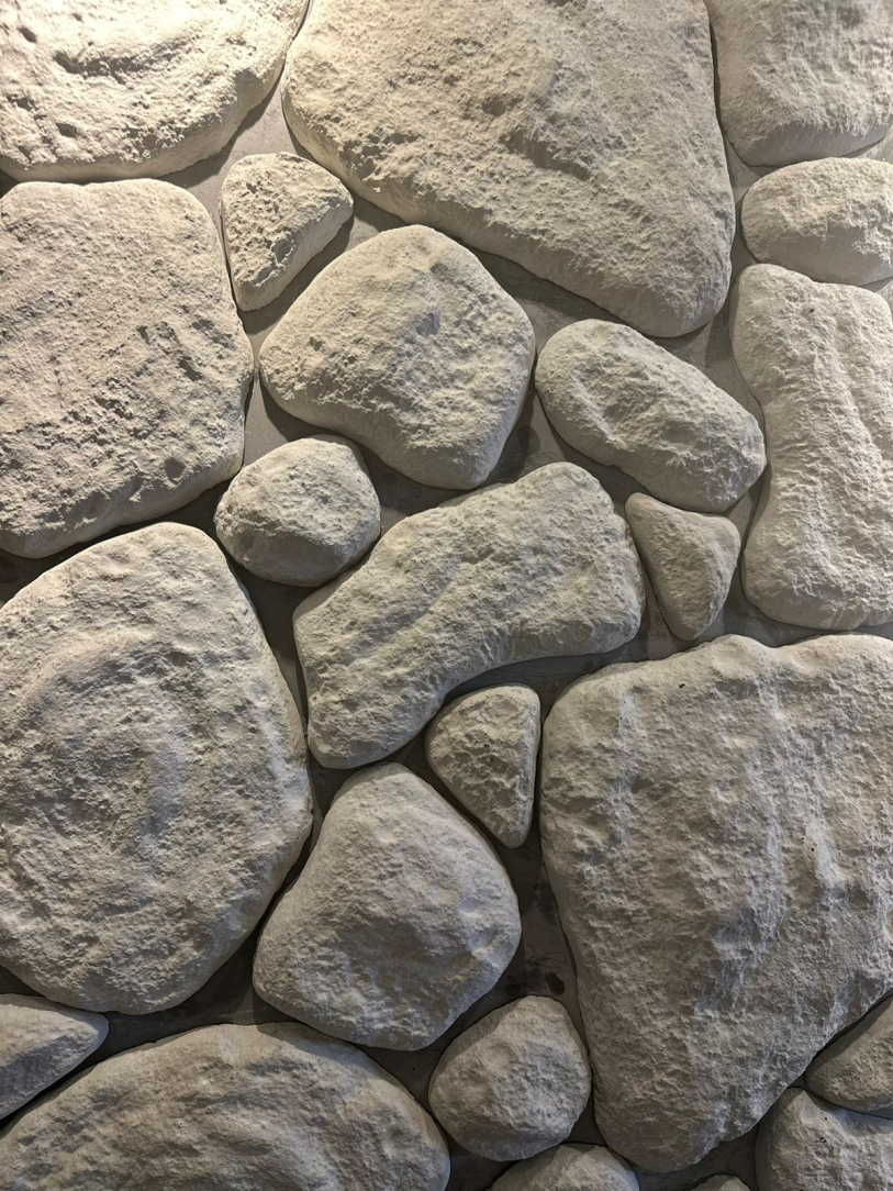 A aparência da pedra moledo unida com o acabamento de concreto, traz um resultado rústico e poroso, imitando uma parede natural de rocha, garantindo assim um efeito único na sua colocação.